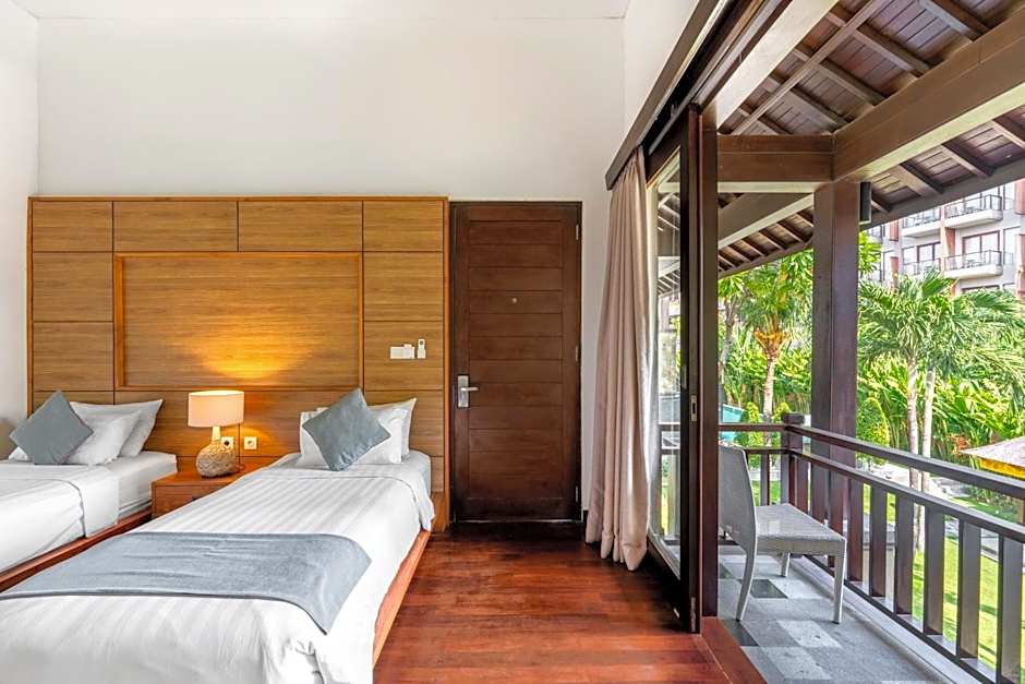 The spacious twin room offers air conditioning, a tea and coffee maker, a balcony with garden views as well as a private bathroom boasting a shower. The unit has 2 beds.